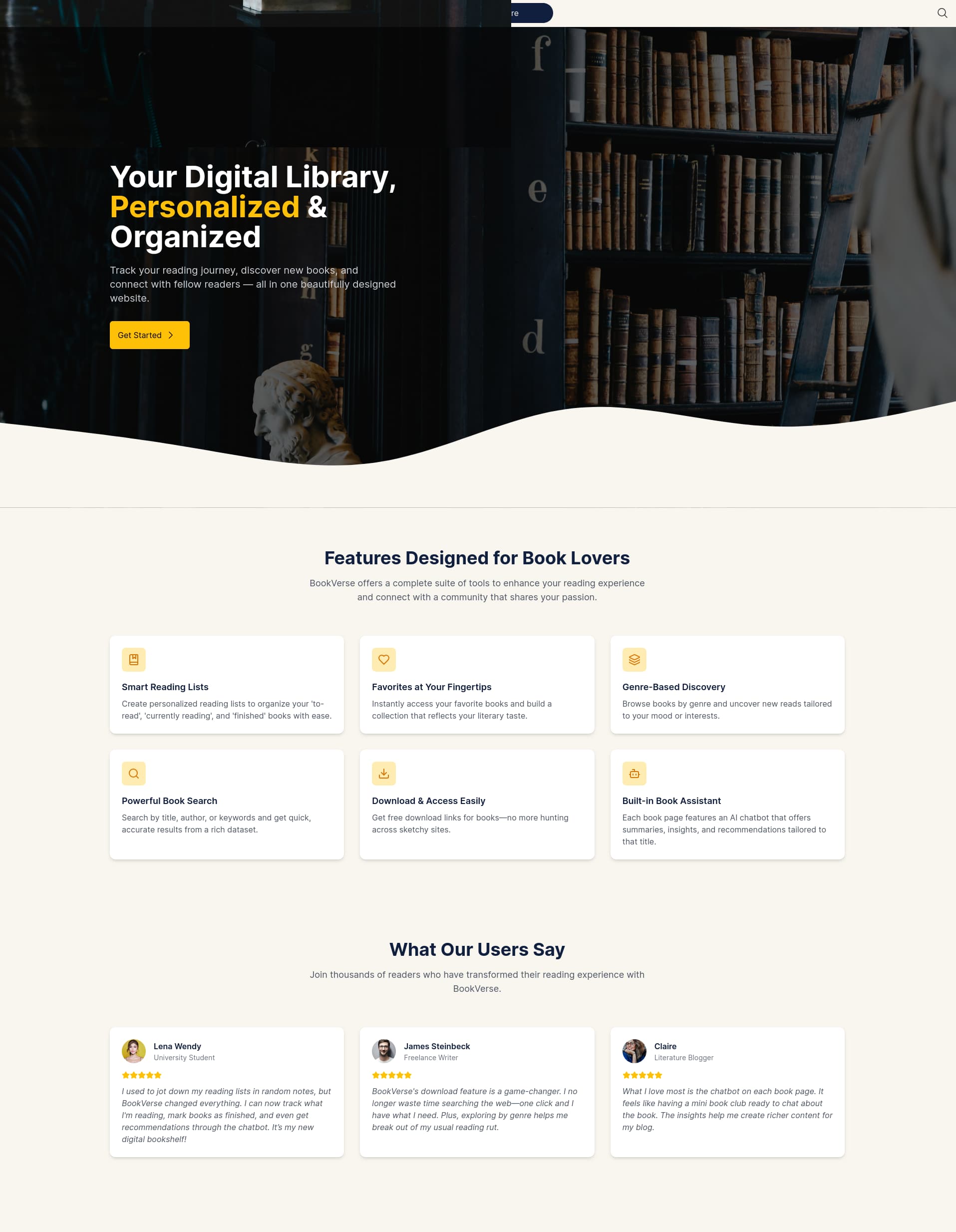As an avid reader and developer, I wanted a smarter way to track my reading journey and discover new books. So, I built BookVerse, a reading companion web app featuring AI-powered book insights, customizable reading lists, and intuitive book tracking to enhance user engagement and accessibility.