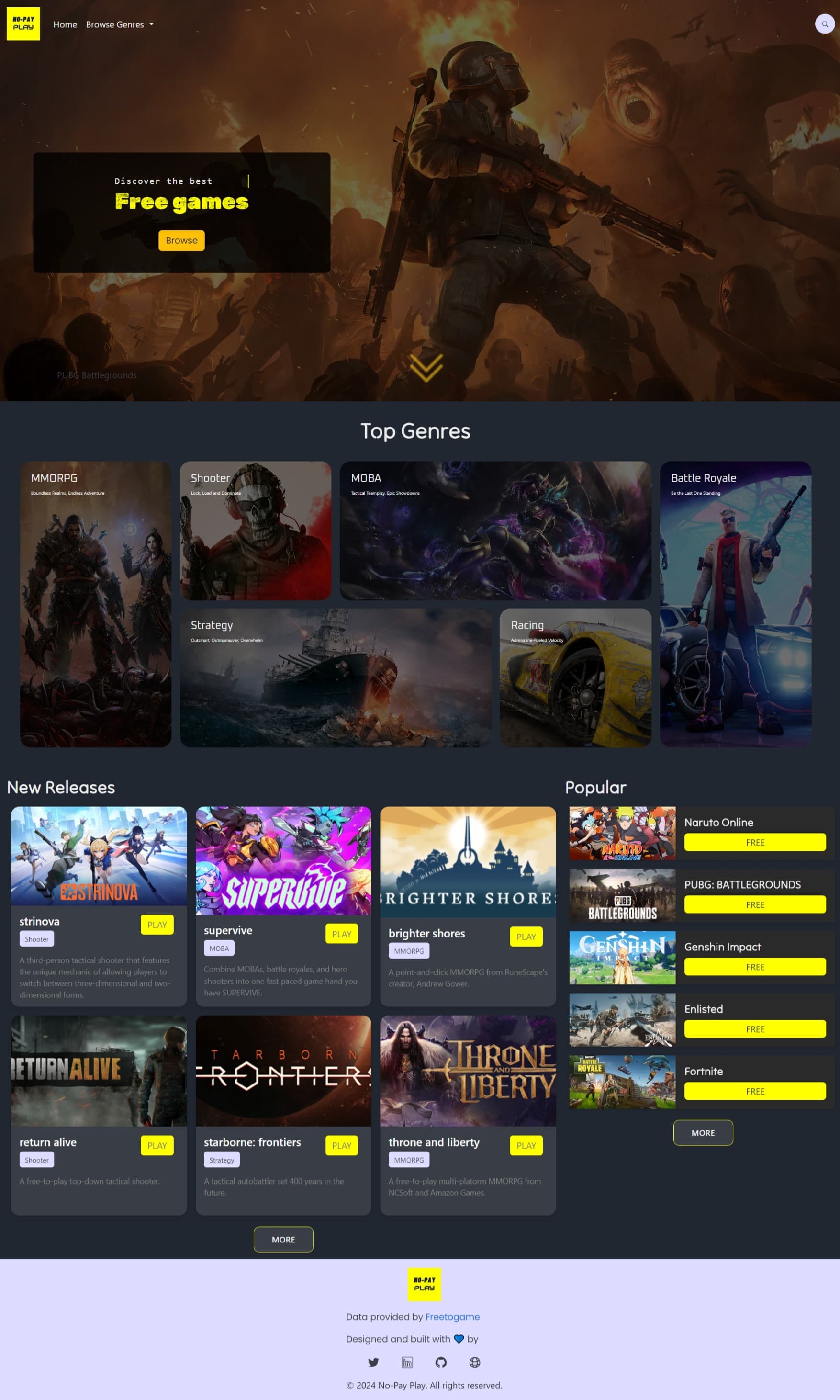 As a passionate gamer on a budget, I often search for quality free-to-play games but get lost in endless ads and unreliable sources. This frustration led me to create No-Pay-Play. No-Pay-Play is a web app offering a curated collection of free-to-play games with a focus on helping gamers find engaging and budget-friendly options.